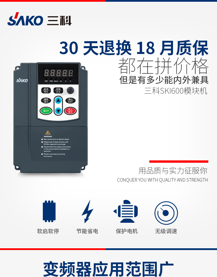 三科變頻器技術(shù)領(lǐng)先,環(huán)保節(jié)能,廣泛應(yīng)用在風機、水泵、空壓機、注塑機、卷繞機、中央空調(diào),紡織機、化工、冶金、礦業(yè)、制藥、陶瓷、造紙、油田、塑料、印刷、熱電、煙草、食品等各類機械設(shè)備中。