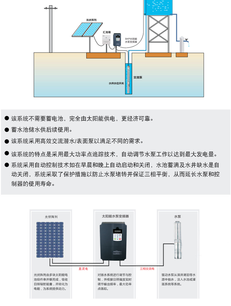 SK650系列變頻器是三科推出的針對光伏發(fā)電,驅(qū)動三相交流水泵的變頻器,它采用大功率點追蹤及久經(jīng)考驗的電機驅(qū)動技術(shù)以催化增大太陽能模塊的輸出功率,它將直流電直接逆變成三相交流電,可驅(qū)動各類交流水泵。同時它支持直流和交流輸入,當(dāng)沒有太陽能時,該變頻器手動切換到單項或三相交流電輸入,如市電發(fā)電機或電池。SK650光伏水泵變頻器提供全方位保護,電機軟啟動及調(diào)速功能,即開即用,安裝方便。| 產(chǎn)品型號 | SKI650A075G-090G-4 | SKI650A090G-110G-4 | SKI650A110G-132G-4 |