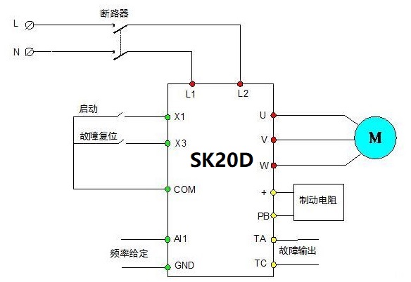 變頻器的安裝接線簡(jiǎn)圖如下: