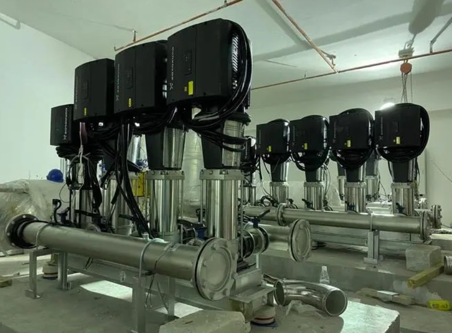 變頻恒壓供水控制器機械設(shè)備系統(tǒng)(變頻柜)由池體、水泵柴油發(fā)電機、循環(huán)軟啟動變頻柜、壓力傳感器、管路互聯(lián)網(wǎng)技術(shù)等構(gòu)成,變頻柜由變頻電磁調(diào)速電機、變頻控制板(PLC)、低壓電器等組成,水泵一般選擇一樣型號規(guī)格2~4臺。